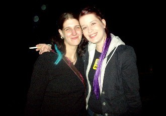 2.Tag: Völlig gerädert, weit vom ausgeschlafen sein entfernt und mit dem Schmerz in der Brust Asmo und Darkline für's Erste wieder gehen lassen zu müssen, wurden wir von Asmo rasch zum Bahnhof kutschiert, wo wir unseren Zug gen Hamburg noch rechtzeitig besteigen konnten. Dummer Weise hatten wir unterschiedliche Sitzplatzreservierungen mit 2 Wagen Unterschied, also ging es in den knapp 3 Stunden Fahrt immer mal von Sitz zu Sitz in der Hoffnung der richtige Anwärter würde nicht auftauchen - und wir hatten tatsächlich Glück und eine fast ruhige Anreise *hehe*. Kurz nach 13 Uhr erreichten wir den Hamburger Hauptbahnhof und wurden herzlich von Dodo begrüßt. Nun noch schnell einige Sachen aus dem sperrigen Koffer in die Tasche umpacken und diesen ins kleine und wesentlich billigere Schließfach einsperren *quetsch, drück, reinstopf* :o). Nun galt es das Hotel zu finden, doch Dank Hilfe unserer Ortskundigen Dodo sind wir an diesem erst mal vorbeigegangen um die dahinter befindlichen Erotik- & Spielsalons zu sehen - Sightseeing mal anders *fg*. Naja, so was passiert eben, wenn man in sein Gespräch vertieft ist und man nicht mehr merkt wo man eigentlich lang läuft und hin will *lach*. Nun ja, erst mal einchecken, Koffer und Taschen durchkramen und dann ab unter die Dusche und fertig stylen da Dodo noch eine kleine Reeperbahn-Führung mit uns vor hatte - na ja eigentlich wollten wir nur zu ihr nach Hause und der Weg führte unweigerlich daran vorbei *g*. Auf der Suche nach etwas Essbarem kamen wir am alten Schlachthof vorbei, wo es uns am Abend hintreiben würde, da die Zeraphinen dort Ihre Songs zum Besten geben wollten. Manu, der gerade mit Andre über den Hof schlich wurde rasch der Ersatzakku und das Ladekabel für die am Vorabend bereits überreichte Kamera in die Hand gedrückt, damit es nicht am fehlenden Strom liegt, wenn sie was filmen wollen.